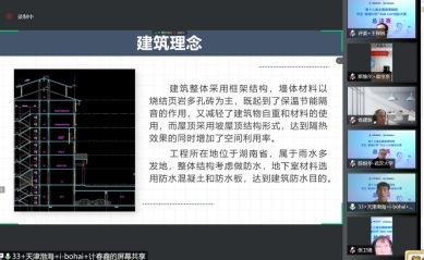 我校工程管理学院共有2支队伍晋级决赛,分别是i-bohai队(宋发、计春鑫、季晓颖、孙昭稀、沈海淼 )和victor队(袁子轩、刘宇宣、任雅彤、李维康、王朝艺),2支队伍分别参加了工程造价应用、绿色建筑分析应用的作品展示及作品答辩环节。自2021年10月以来,2支队伍分别在指导教师靳华蕾、赵朋、李新明、穆蒙蒙老师的组织下积极备赛,经历一个寒假的持续备赛,虽然疫情原因导致延迟开学,但是同学们及老师们坚持做到“停课不停赛,线上展风采”。疫情在家备赛期间,教师通过语音会议等多种形式进行备赛指导,为了保证答辩效果的最佳状态,指导教师要求学生发送答辩展示录音,这样可以清晰地发现演讲稿中的每一处细节及当时的情绪状态。决赛的前几天,学生和教师一直在辛勤地进行答辩模拟,这些都为顺利答辩奠定了基础。